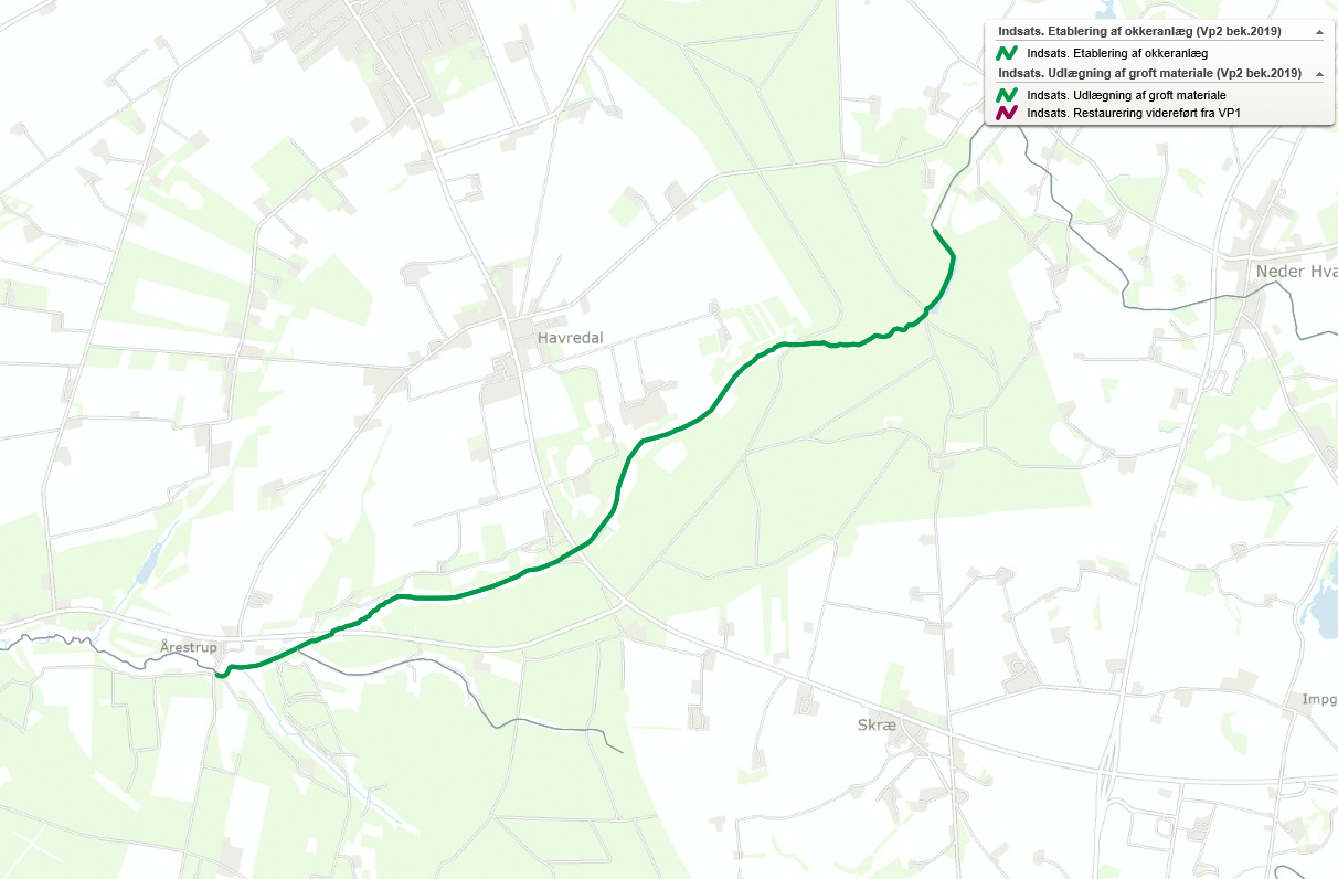 Indsatsen er: Udlægning af groft materiale samt etablering af okkeranlæg