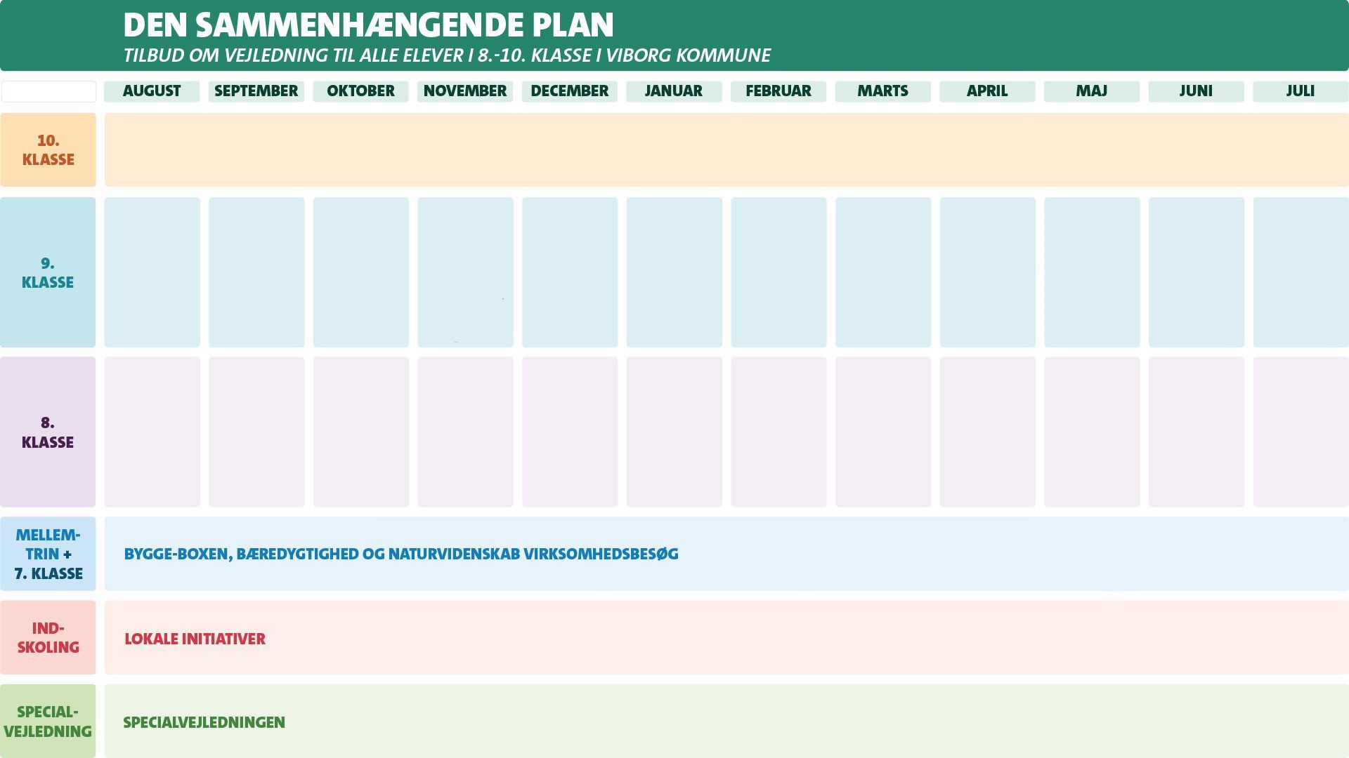 Planen skal sikre en systematisk, koordineret og sammenhængende skole- og vejledningsindsats for alle elever i 7.-10. klasse og deres forældre, så de oplever sammenhæng mellem skole, Uddannelsesvejledningen og overgangen til ungdomsuddannelse.