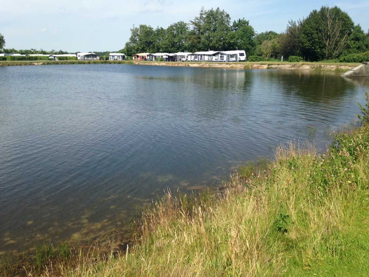 - Kunstig sø med gode faciliteter, klart vand og bliver renset op hvert efterår.