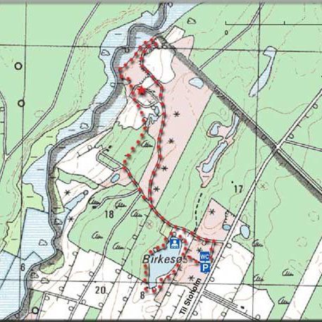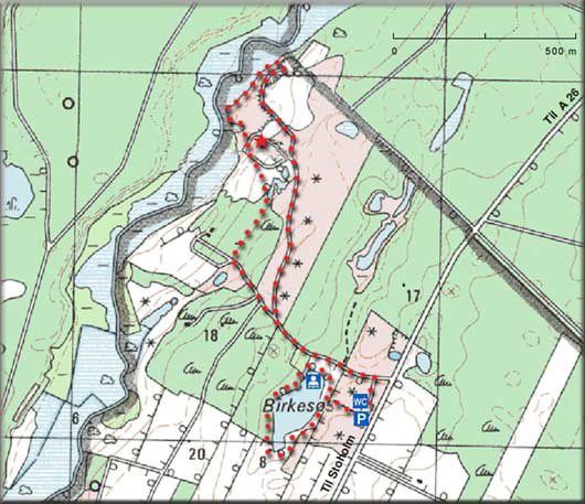 Vandreruten er i alt 2,5 km lang og starter ved P-pladsen ved Birkesø.