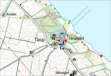 Taarup Kirke ligger tæt ved og har flot inventar og er værd at se, især altertavlen og pulpituret (hævet lidt over gulvet og med plads til 8-10 personer).